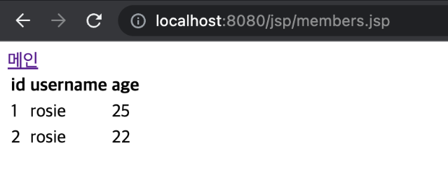 http://localhost:8080/jsp/members.jsp 실행 결과