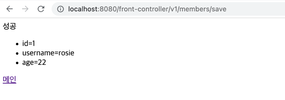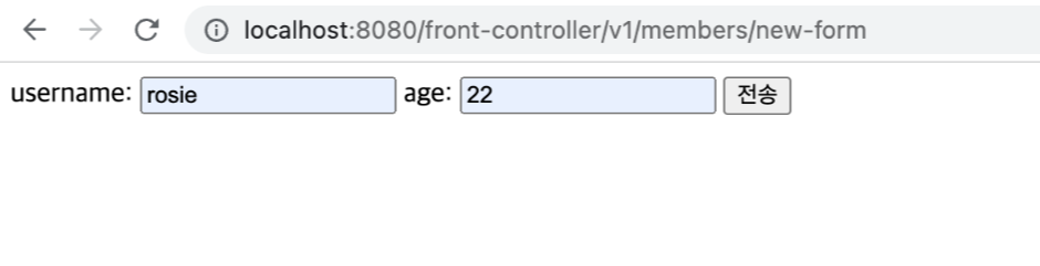 http://localhost:8080/front-controller/v1/members/new-form 등록 실행 결과