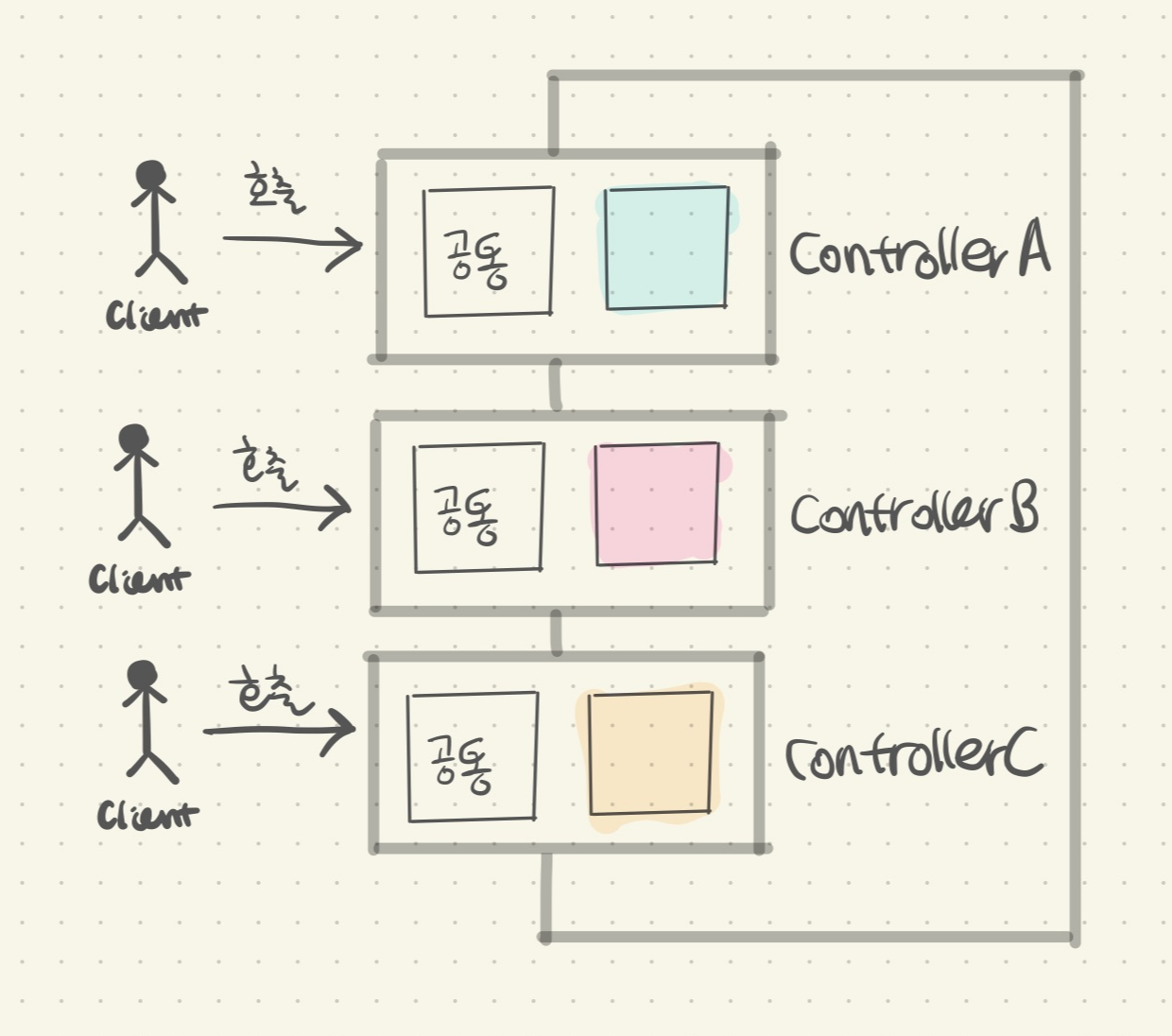 공통의 관심사를 별도로 모으는 소위 문지기 역할을 하는 것을 controller앞에 도입한다.