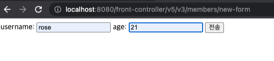 http://localhost:8080/front-controller/v5/v3/members/new-form 등록 실행 결과