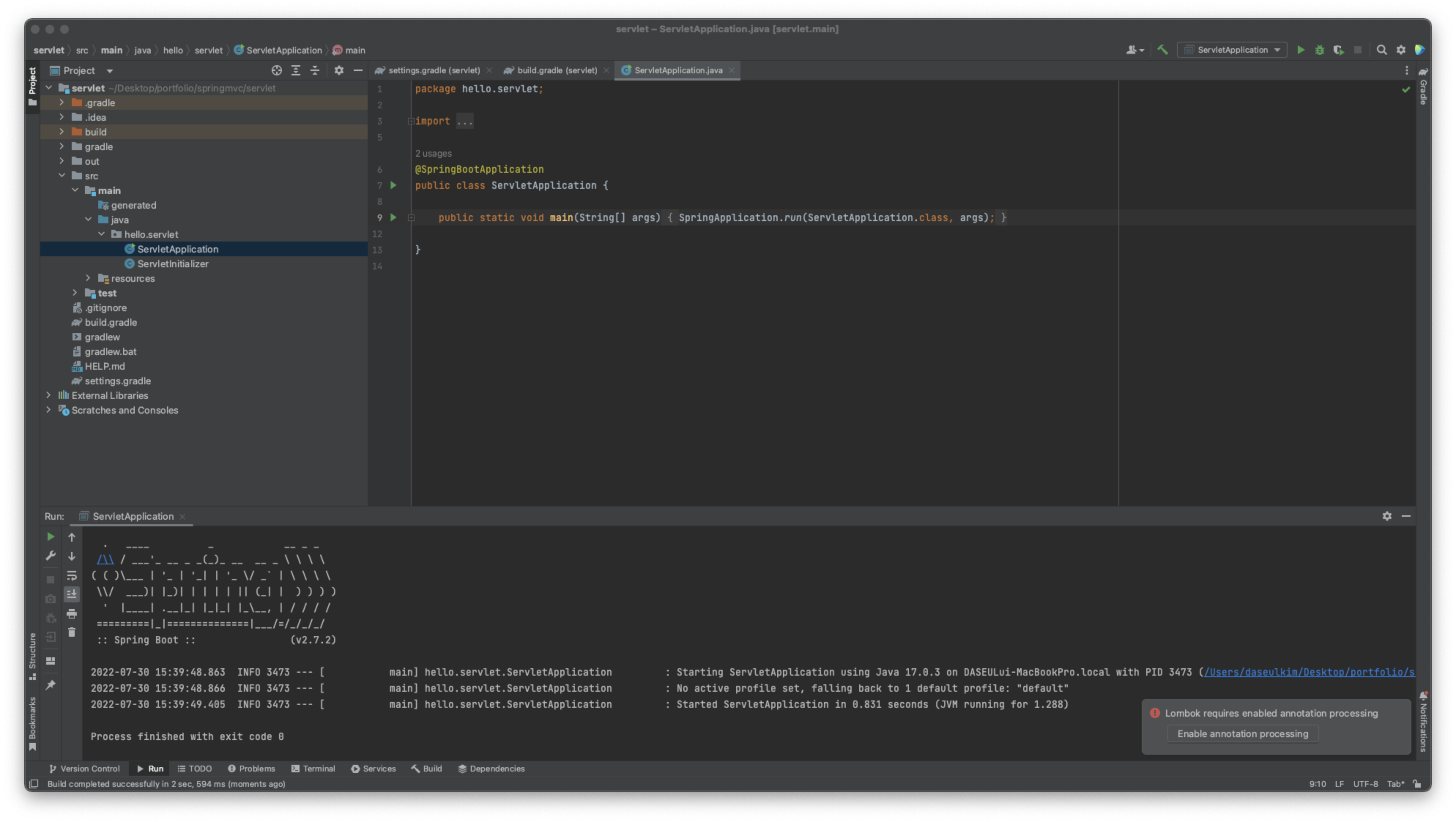 4. ServletApplication.java 실행 후 톰캣이 떴는지 확인